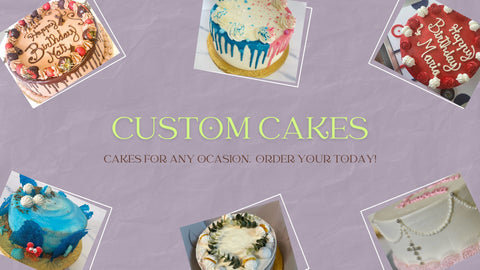 CUSTOM CAKE DELIVERY All custom cakes require a delivery fee. Please contact us directly for more information.